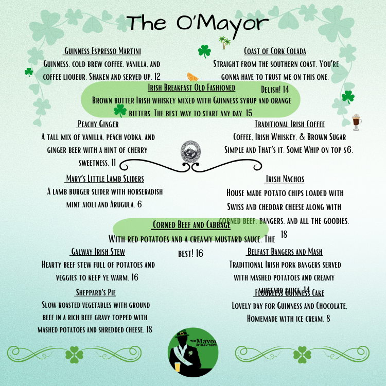 March 27, 2026Enjoy St. Paddy's Day Inspired features from the kitchen and the bar with us all month long. Sláinte!